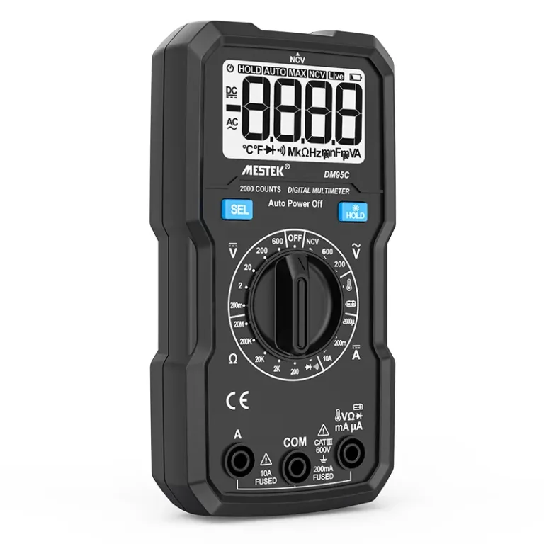 Đồng hồ vạn năng kỹ thuật số cầm tay DM95C được trang bị màn hình 2000 chữ số. Nó hỗ trợ điện áp DC lên đến 600V , điện áp AC lên đến 600V và dòng điện DC lên đến 10A .