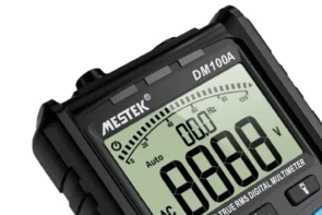DM100A cũng hỗ trợ kiểm tra nhiệt độ với đầu dò loại K (tùy chọn). Đồng hồ vạn năng này đáp ứng tiêu chuẩn an toàn CAT III 1000V và được cấp nguồn bằng hai pin AA.