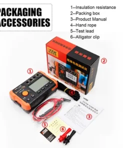 Thiết bị này sử dụng bộ chuyển đổi điện áp DC với mức tiêu thụ điện năng thấp và tỷ lệ chuyển đổi năng lượng điện cảm cao, có thể chuyển đổi điện áp 9V sang điện áp DC 250V/500V/1000V. Thiết bị sử dụng cầu kỹ thuật số để đo điện trở cách điện với các tính năng thân thiện với người dùng, phạm vi mở rộng lớn, màn hình đèn nền, giữ dữ liệu và tự động tắt nguồn. Toàn bộ thiết bị có kiểu dáng thời trang, cao cấp và hiệu suất ổn định cao, có thể vận hành bằng cả hai tay thông qua dây đeo vai. Thiết bị