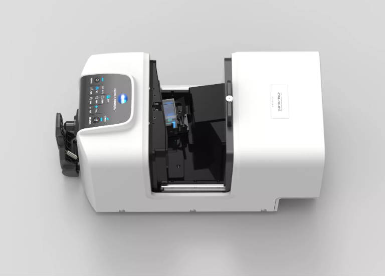 Thiết bị đo này là mẫu máy đo màu cố định nằm ngang loại d/8 hình cầu tích hợp có thể đo màu sắc và độ bóng đồng thời trong khi vẫn duy trì khả năng tương thích dữ liệu với sản phẩm bán chạy lâu năm CM-3600A (* tại SCI/LAV).